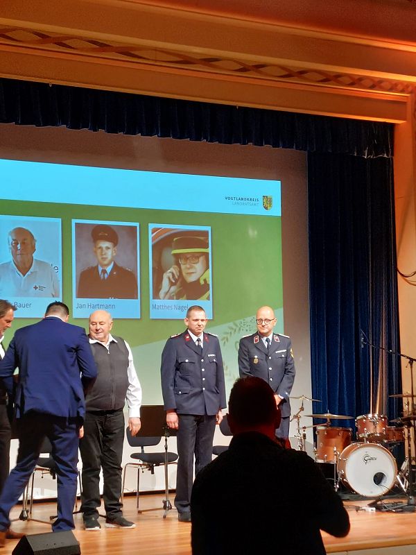 Aus unserer Feuerwehr durfte diese Ehrung unser Kamerad Löschmeister Jan Hartmann empfangen. Er ist als verlässlicher Kamerad in unserer Feuerwehr unverzichtbar, er betreut die Feuerwehrchronik und ist der Ortschronist der Gemeinde Grünbach! Er unterstützt die Arbeit unserer Jugendfeuerwehr, ist Chefkoch an unserer Feuerwehr-Feldküche und leidenschaftlicher Sammler und "Bewahrer" alter Feuerwehrtechnik, und jeglichen Erinnerungstücke aus dem Zeitgeschehen unserer Gemeinde.