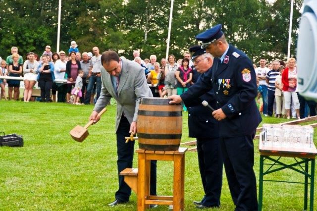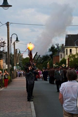 Alle Schüsse unserer Schützen saßen, die Marschformation und vorherige Aufstellung klappte und alle Zuschauer waren begeistert. Nach kurzen Grußworten zur Eröffnung von Bürgermeister, Vereinsvorsitzenden und Wehrleiter schallte die Kanone mit etwas Zündverzögerung über den Sportplatz, Tauben flogen als Zeichen des Friedens durch die Luft und die Kirmes wurde mit 3 kräftigen Schlägen in das Sternquellfaß endlich eröffnet. Nun wird sich zeigen, was über 1 1/2-Jahre Festvorbereitung bringen werden! Doch der Auftakt war geglückt. Geglückt war auch die Kapellenwahl am Freitag. Die Gruppe LTR-Live holte alles aus ihren Repertoire und begeisterte die Zeltgäste, aber vor allem unsere Blasmusikanten aus Österreich, die bis zum frühen Morgen im Zelt die Bierzeltbänke und Tische auf Haltbarkeit testeten. Kaum zu glauben das diese den Ansturm ausgehalten haben und kaum zu glauben, das die Musikanten am nächsten Morgen 10:00 Uhr zur Festsitzung einen vernünftigen Ton spielen konnten!