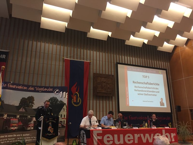 Das war auch der Tenor in dem Jahresbericht des Vorstandes des Kreisfeuerwehrverbandes (KFV), den der 1. Stellvertreter Tino Gerbet vor den anwesenden Kameradinnen und Kameraden hielt. Die gedruckten Tischkarten der Ehrengäste konnte der Leiter der Geschäftsstelle Daniel Löwenhagen wieder unbenutzt in den Reißwolf werfen. Weder der Hausherr OB Oberdorfer selbst, noch alle anderen fanden den Weg zur wichtigsten Feuerwehrveranstaltung im Jahr 2017. Und bestimmt hatten alle auch einen Grund! Da kann uns der Verlag Reader`s Digest noch so oft zur beliebtesten Organisation in Deutschland wählen - so kommen wir keinen Schritt weiter, Bürgern den Job in unseren Reihen interessant zu machen, denn dieses Problem teilen alle Feuerwehren und nicht nur im Vogtland!
