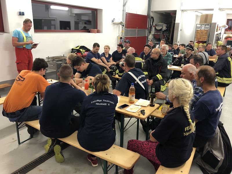 Am Ende gab es einen gemeinsamen Erfolg, wenn gleich nicht ganz fehlerlos. Doch genau deshalb trainieren wir ja, wie Einsatzleiter Auerbach bei der anschließenden Auswertung der Übung zusammenfasste. Nach einem Imbiss im Neustädter Feuerwehrhaus ging es dann für die Grünbacher wieder nach Hause, mit der Gewissheit aller, so lange bis zur nächsten gemeinsamen Übung nicht mehr zu warten.