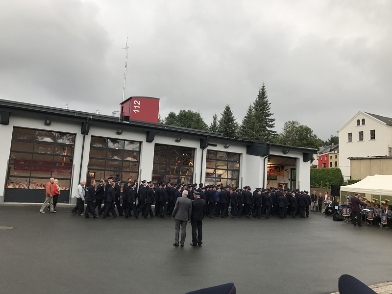 Die Kameraden in Markneukirchen können aufatmen! Endlich beziehen Sie Ihre lang ersehnte neuer Feuerwache im Zentrum der Stadt. Für 3.9€ Mio können die Einsatzkräfte auf alles zurückgreifen, was eine moderne Feuerwache benötig! Eine moderne Schlauchpflege, Atemschutzwerkstatt, 8 Stellplätze, eine Videoüberwachung, Brandmeldeanlage und vieles mehr. Das konnten die geladenen Festgäste zur feierlichen Eröffnung mit Apell und Einmarsch der Kameraden erfahren.