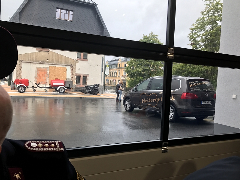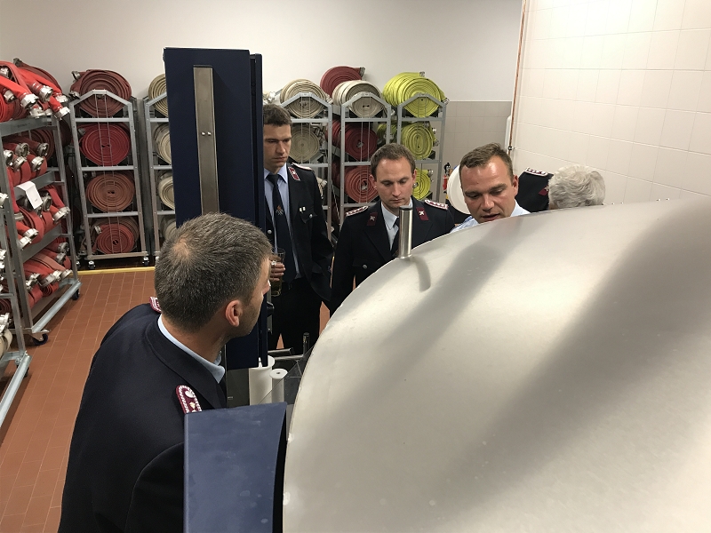 Am nächsten Tag präsentierten die Kameraden gleich der Bevölkerung ihr neues zu Hause bei einem "Tag der offenen Tür" und viele Neugierige kamen. Auch eine weitere Delegation Grünbacher Feuerwehrkameradinnen und Kameraden kamen zu Besuch und waren zum Schluss die Letzten, welche mit Bürgermeister Rubner, Stadtwehrleiter Voigt und Wehrleiter Männel gemütlich über das neue Zeitalter des Markneukirchener Feuerwehrwesens plauderten.