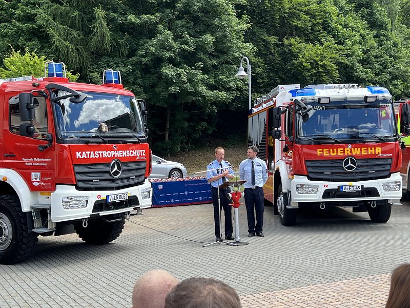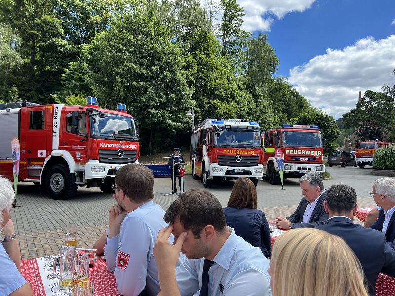 Es dürfte zu einem historischen Datum in der Chronik der Feuerwehren des Waldgebietes werden, dieser 2. Juli 2022. Nach Jahren des Ringens um moderne Einsatztechnik, nach Jahren der Improvisation nun endlich dieses Großereignis! Gleich zwei Löschfahrzeuge konnten feierlich mit vielen Gästen aus nah und fern in den Einsatzdienst gestellt werden.