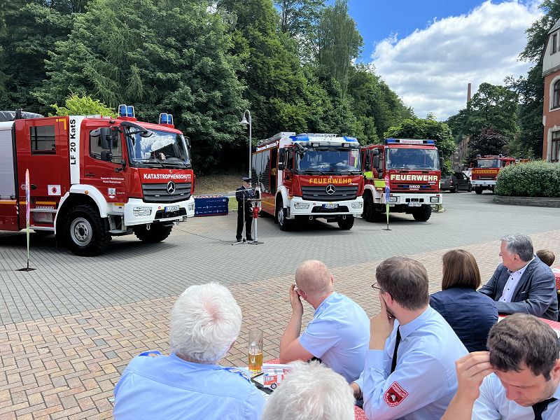 Zum einen war es das „niegelnagelneue“ Hilfeleistungslöschfahrzeug HLF 20 für die Ortsfeuerwehr in Tannenbergsthal. Und zum anderen das LF 20 der Ortswehr Rautenkranz, welches allerdings schon fast 2 Jahre gute Dienste leistet, nur halt nicht feierlich eingeweiht werden konnte.