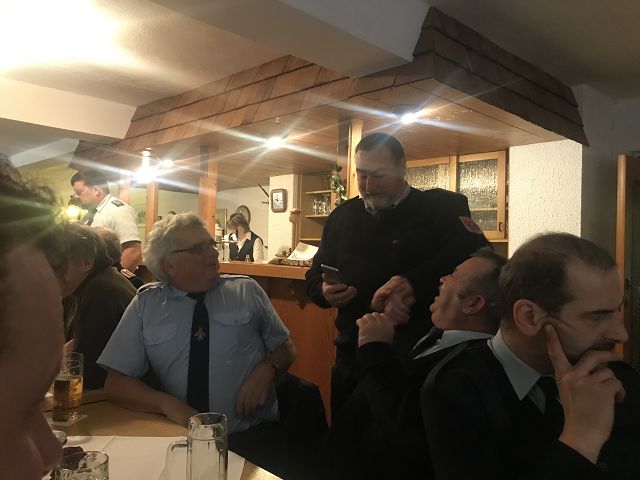 Natürlich durften die obligatorischen Lieder aus dem "Grünbacher Stammtischrepertoire" über den Stabsfeldwebel, unserem Dietmar, dem Hammer und den Bürsten aus Schönheide nicht fehlen! Auch die Mittagsgäste des Wirtshauses hatte so ihren Spaß dabei!