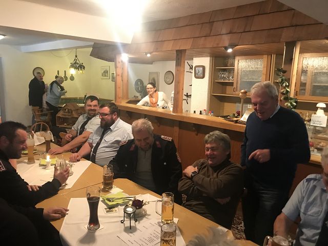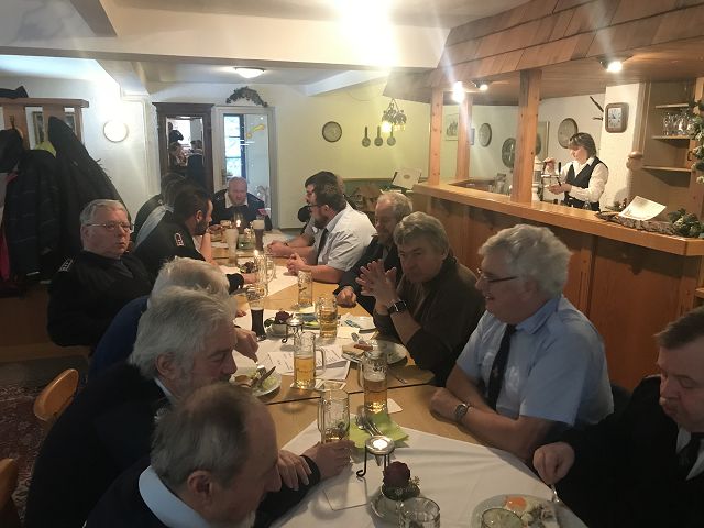 Eine langen Gästtafel war für uns eingedeckt und nachdem auch die Fahrzeuge mit den nicht so wanderlustigen Kameraden eintrafen, mussten die Tischtafeln angebaut werden. So waren wir am Ende mehr als 40 Leute. So funktioniert gelebte Kameradschaft und so funktioniertVereinsleben in Ortskneipen!