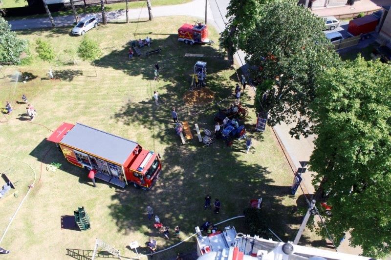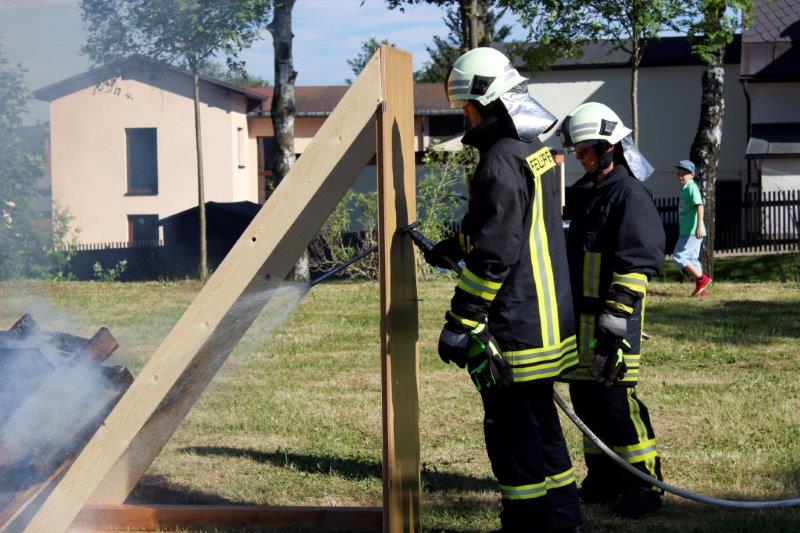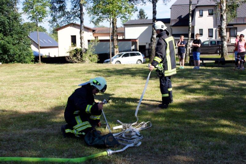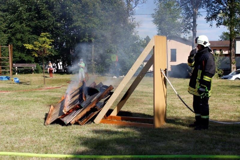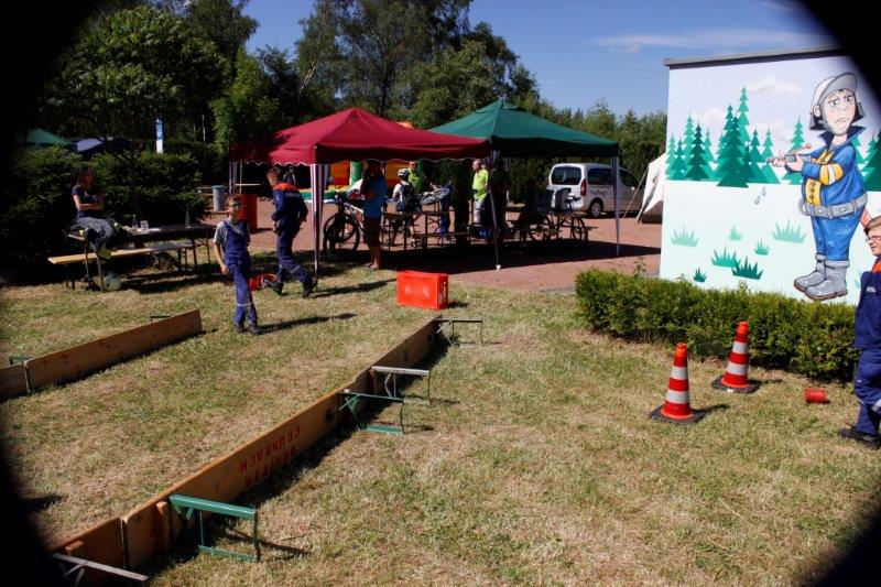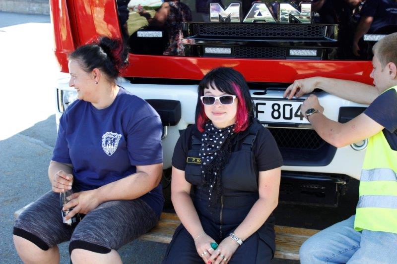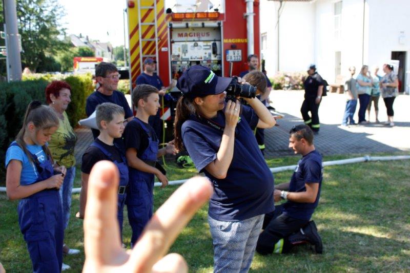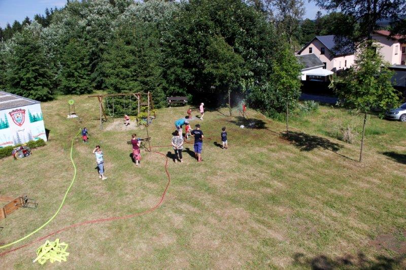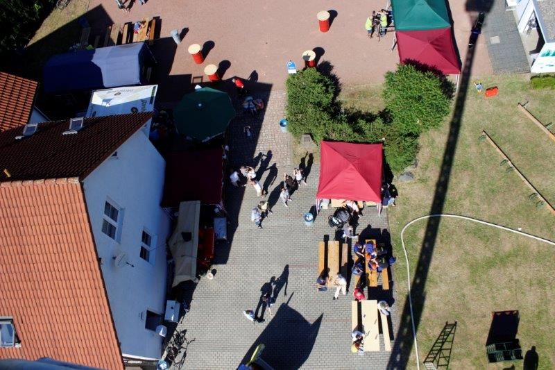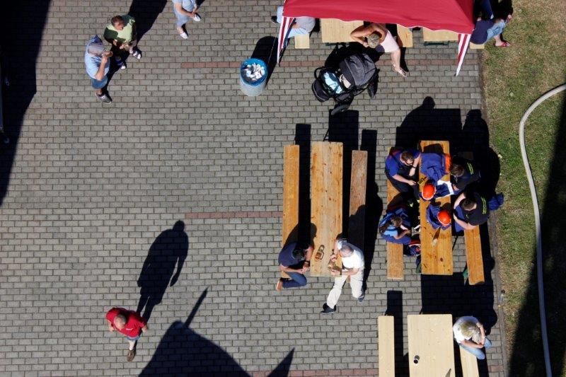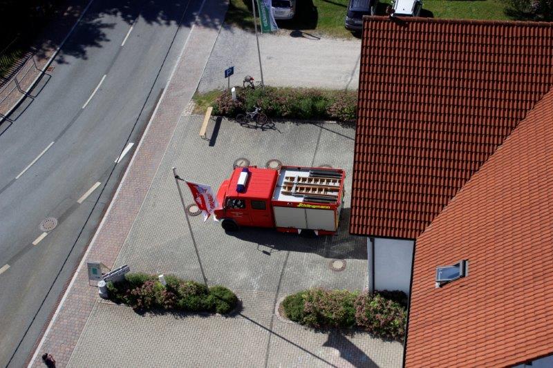 Die Falkensteiner Feuerwehr war mit ihrer Drehleiter da und jeder durfte sein Können beim Bierkastenklettern versuchen, dass am Ende Ricardo Behlke mit 25 Kästen gewann. Die Muldenberger Feuerwehr war mit 4 Kameraden zu Rundfahrten bereit und auch die Grünbacher warfen jeden Kameraden in den Ring" der greifbar war!