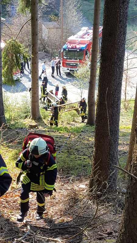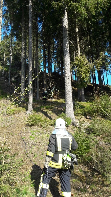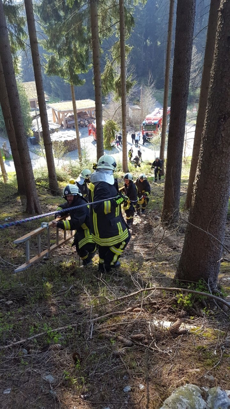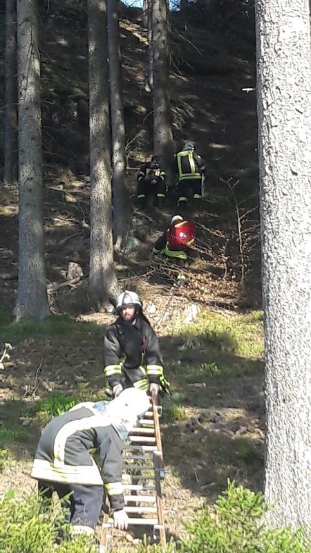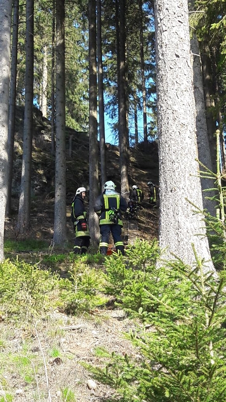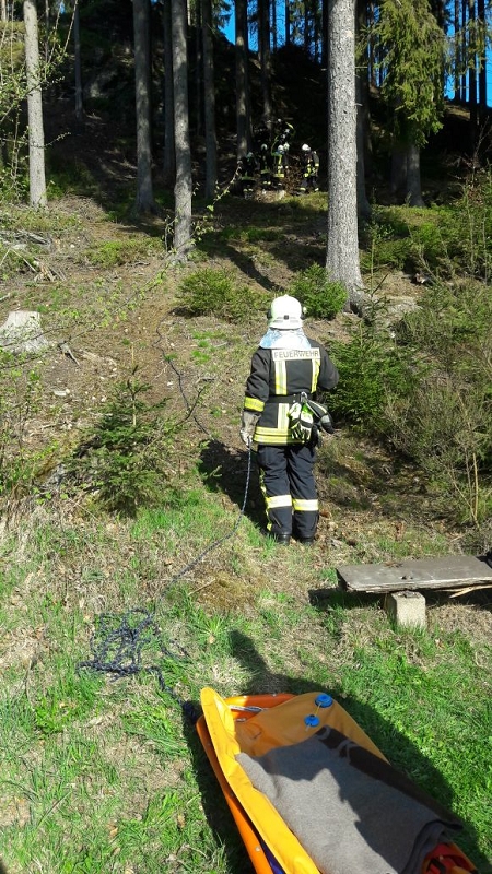 Ein Pilzsammler könnte zum Beispiel in solchem Gelände verunglücken und den rettungsdienst rufen wollen. Dieser wird den Verletzten aber nicht allen retten können und wird auf die Hilfe und Unterstützung der Feuerwehr angewiesen sein.