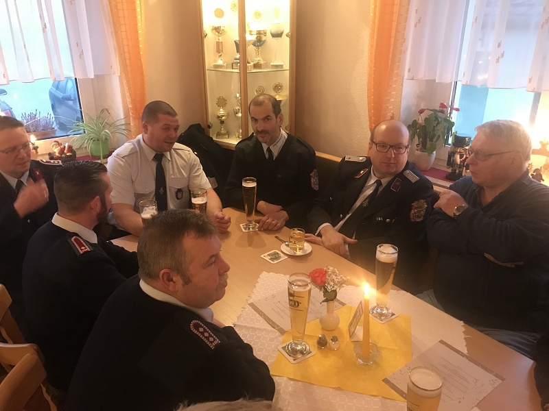 Fast 40 Kameraden trafen sich zum "Abschiedsstammtisch" und bildeten einen würdigen Rahmen. Seit vielen Jahren gehörte die Feuerwehr zu den Stammgästen des Wirtshauses, insbesondere um Ostern und Weihnachten herum. Die Wirtsleute Schädlich bedankten sich dafür immer und haben seit Jahren nie den Hydrantenabend der Feuerwehr vergessen.