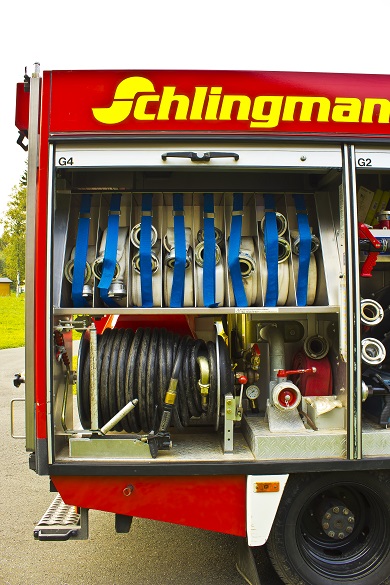 Im Geräteraum 1 sind neben einem Notstromaggregat mit 5,5 kW/h und dem Kleinlöschgerät Highpress auch alle Utensilien zur Wasserentnahme aus Hydranten verlastet.
