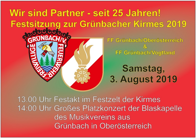 Am Sonntag, dem 4. August 2019 haben sich die zwei Reisebusse aus Oberösterreich wieder gen Heimat in Fahrt gesetzt. Zwei Tage bevölkerten rund 100 Freunde aus der österreichischen Partnergemeinde Grünbach bei Freistadt unsere Gemeinde. Sie sorgten bei der Kirmesveranstaltung mit Sicherheit für einen entscheidenden Höhepunkt und nicht zuletzt gab es für den Veranstalter ein Umsatzplus!