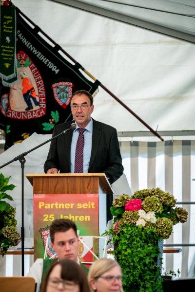 Altwehrleiter Thomas Geigenmüller blickte auch kurz auf schwierigere Phasen der Partnerschaft zurück und motivierte die nun in der Verantwortung stehenden Kameraden nie aufzugeben, die Partnerschaft zu pflegen.
