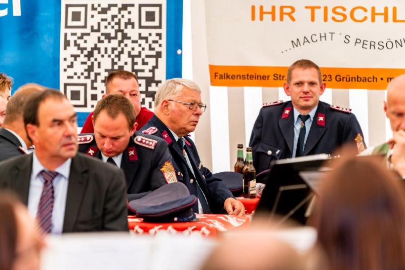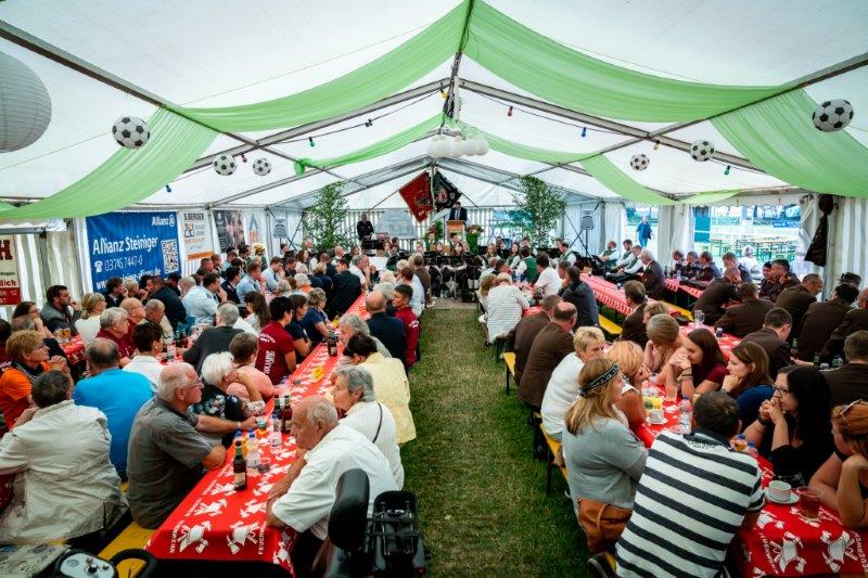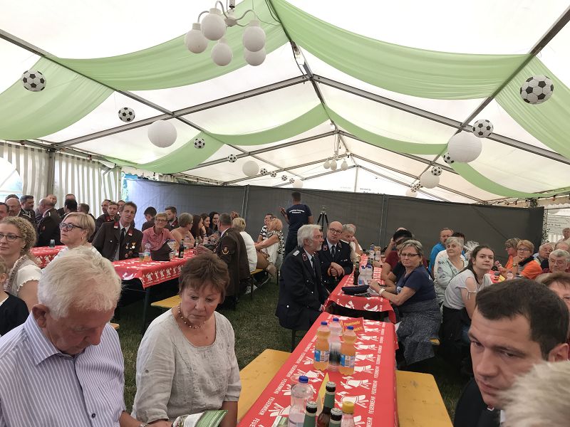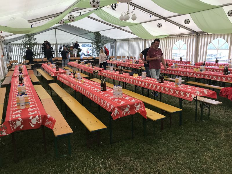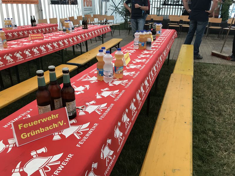 Am nächsten Morgen wurde ein Teil des Fußball-Festzeltes zur Festsitzung anlässlich der 25-jährigen Partnerschaft der Feuerwehren aus Österreich und dem Vogtland vorbereitet.