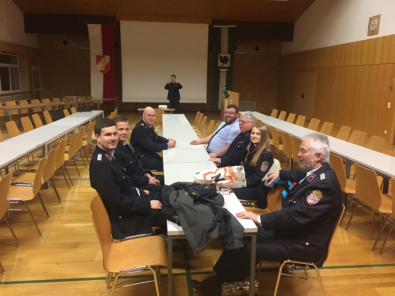 Die Partner und der Anlass sind so vertraut und doch war diese Jahreshauptversammlung eine Überraschungstüte! Auf Grund dessen, dass der Ort im Mühlviertel keine Gaststätte mehr besitzt, musste die Versammlung in den Kultursaal der Grundschule verlegt werden. Dort hatten die Frauen und Männer aus der Turnhalle einen ansprechenden Tagungsraum gemacht! Für uns Vogtländer hieß es nach der Ankunft im Hotel Blumauer das legere Freizeitoutfit mit der Dienstuniform zu tauschen und pünktlich zur Sitzung zu erscheinen. Das gelang mehr als perfekt- wir waren die Ersten im Saal.