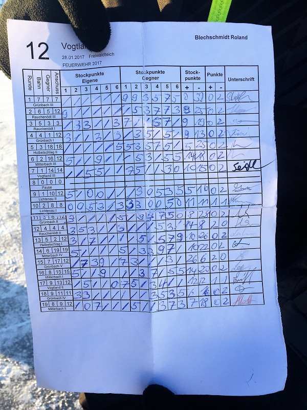 Um 9:00 Uhr in der Frühe hieß es dann für über 180 Feuerwehrkameradinnen und Kameraden "Stock heil!" zum größten Eisstockturnier der Mühlviertelgemeinde. Wir dürfen schon seit Jahren an diesem Turnier teilnehmen. Dieses Mal waren wir mit 10 Leuten am Turnier am Start und stellten 2 Mannschaften. Die beiden anderen Kameraden konnten in einem Mixed-Team mit 2 österreichischen Kameraden kämpfen und wurden am Ende mit Platz 13 die erfolgreichsten Vogtländer! Für die Teams Vogtland I und Vogtland II waren erneut nur die beiden letzten Plätze reserviert, obwohl wir erstmals sogar mit beiden Mannschaften gegen 2 Mannschaften aus dem Mutterland des Eisstockes gewinnen konnten und mit 6 bzw. 7 Siegpunkten noch nie so viele Zähler erkämpften konnten. Nun gut-wir waren dabei!