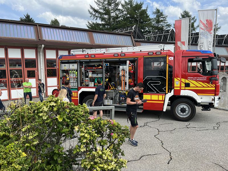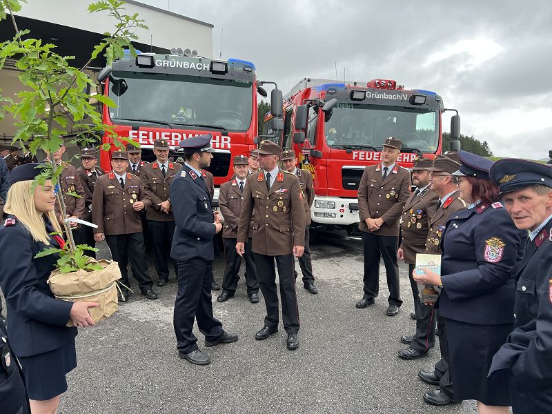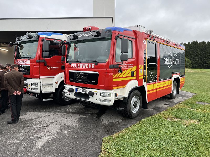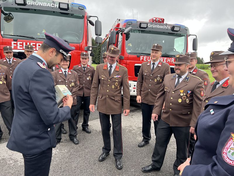 Eine 22-köpfige deutsche Delegation machte sich mit 4 Fahrzeugen auf den Weg ins Mühlviertel! Als Überraschung kam auch das große Löschfahrzeug der vogtländischen Wehr zur Fahrzeugeinweihung des österreichischen Löschfahrzeuges mit nach Grünbach. Die Langstreckenfahrt wird von Fahrzeugherstellern immer wieder empfohlen um alle Fahrgestellkomponenten umfassend einzufahren, da Feuerwehrfahrzeuge ja meist mehr in Hallen unbenutzt stehen müssen. Wir haben das bereits mit dem alten LF 16 aus dem Jahr 1996 ebenso getan! Und die Maschinisten lobten das Fahrzeug auf der langen Fahrt!