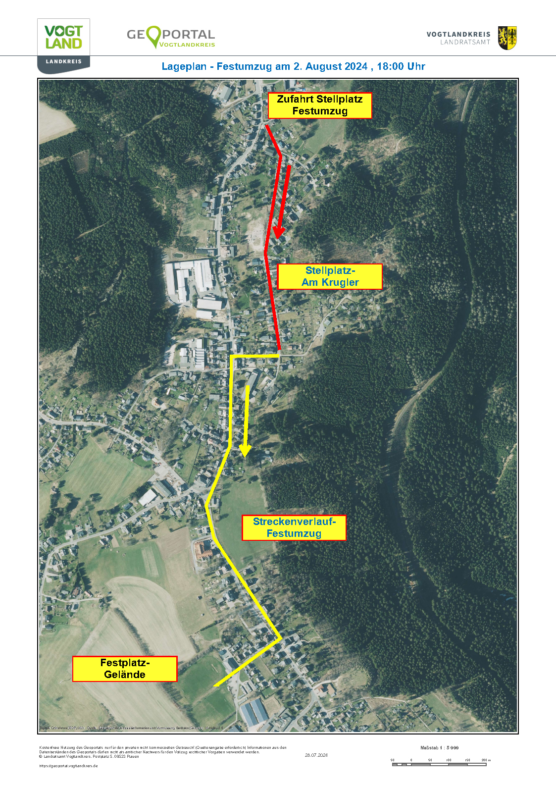 Stellplatz und Treffpunkt ist die Waldstraße. Fahrzeuge des Umzuges fahren bitte von unten, aus Richtung Falkenstein zur Aufstellung ein. (Siehe Lageplan)