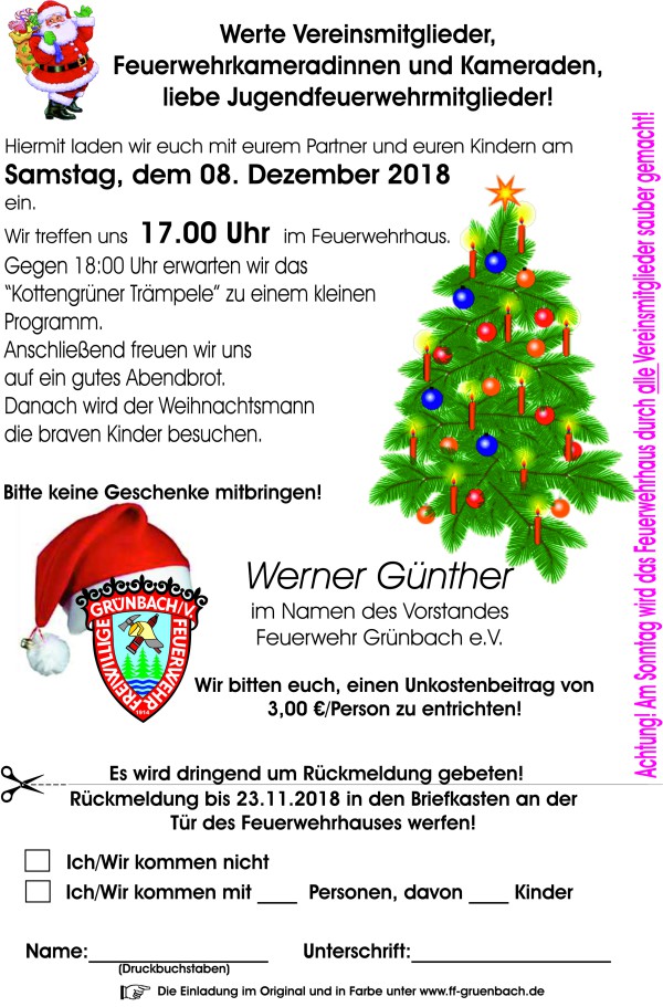 Die Weihnachsfeier wurde erneut auf Anfang Dezember gelegt. Es gibt auch Überraschungen. Wir freuen uns auf Eure Rückmeldungen und auf Eure Unterstützung bei der morgendlichen Reinigung!
