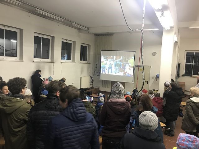 Zunächst wurde ein Playmobil-Film über eine Familie im Weihnachtsstress als Kurzfilm gezeigt. Die Message: Vergesst das Kerzenausmachen nicht, wenn ihr die Wohnung verlasst!