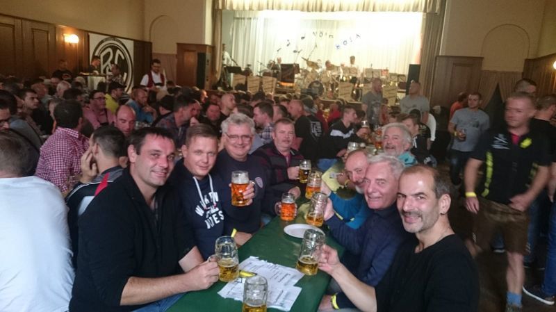 Die Grünbacher Delegation aber schon, auch wenn die Bildqualität etwas anderes vermuten lässt. Nunmehr schon das dritte Jahr ist der Grünbacher Feuerwehrverein Gast im Alten Schloß zu Erlbach um die KIRWE 2019 gemeinsam mit vielen anderen Kimesfans zu beschließen. Rein kommt man da nur mit lange vorbestellten Karten- was für ein Wahnsinn an einem Montag Morgen. Da ruhen sich die Grünbacher zu ihrer Kirmes eigentlich aus, um am Abend noch einmal den Wahnsinn enden zu lassen. Und so mancher Erlbacher ist bestimmt auch dabei!