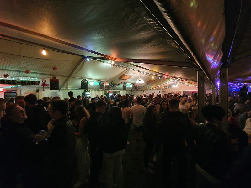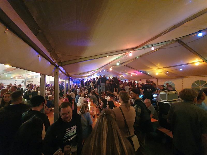 Die Band TROXIN heizte von Beginn an das Zelt an, die Bierzeltgarnituren mussten wieder eine Menge Last tragen. Nicht jede überlebte den Abend!