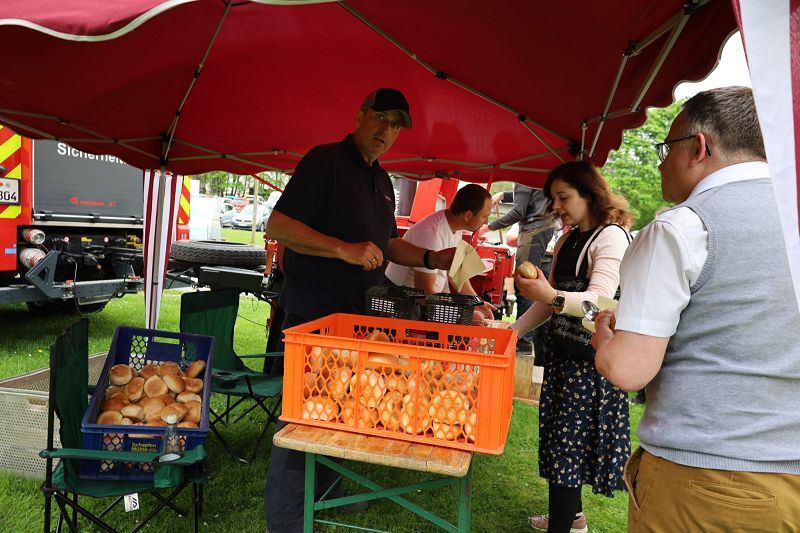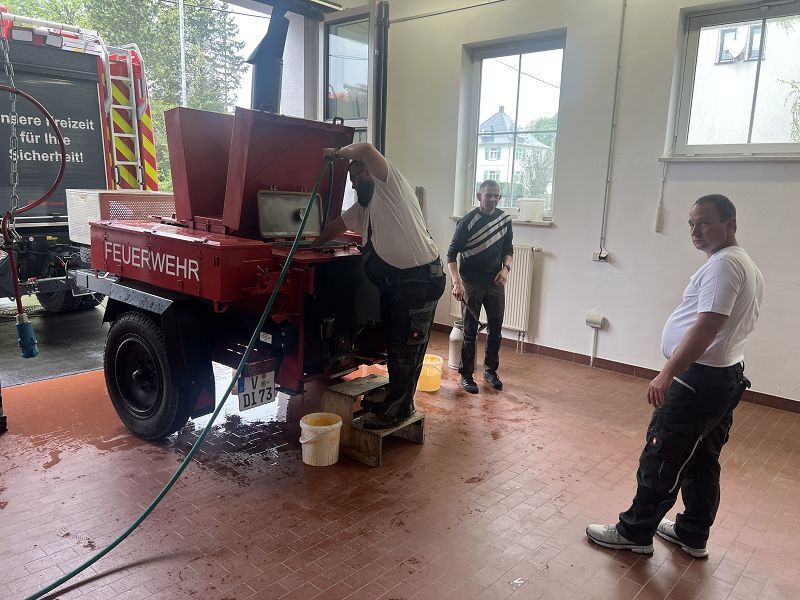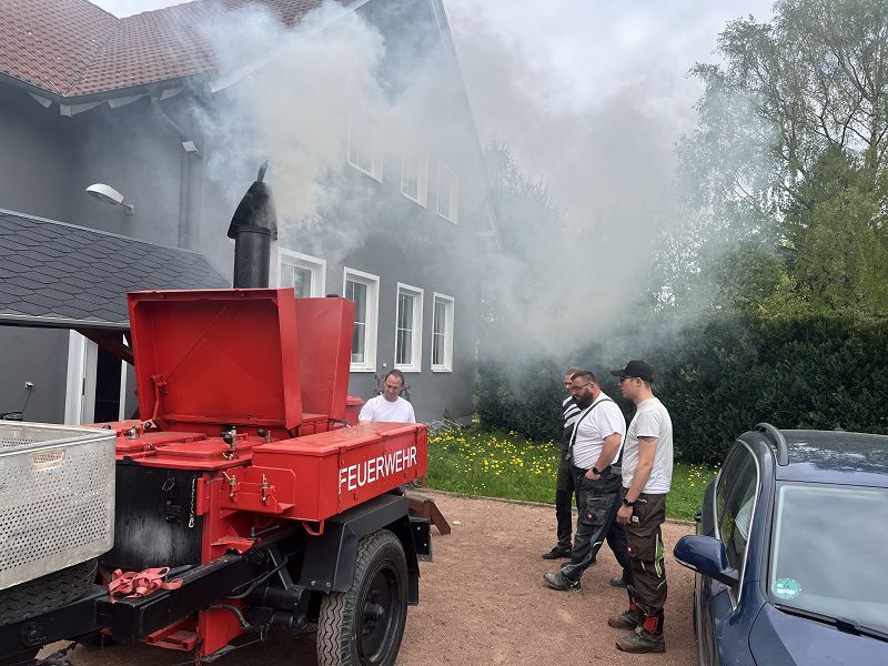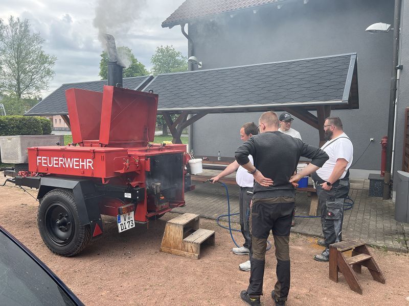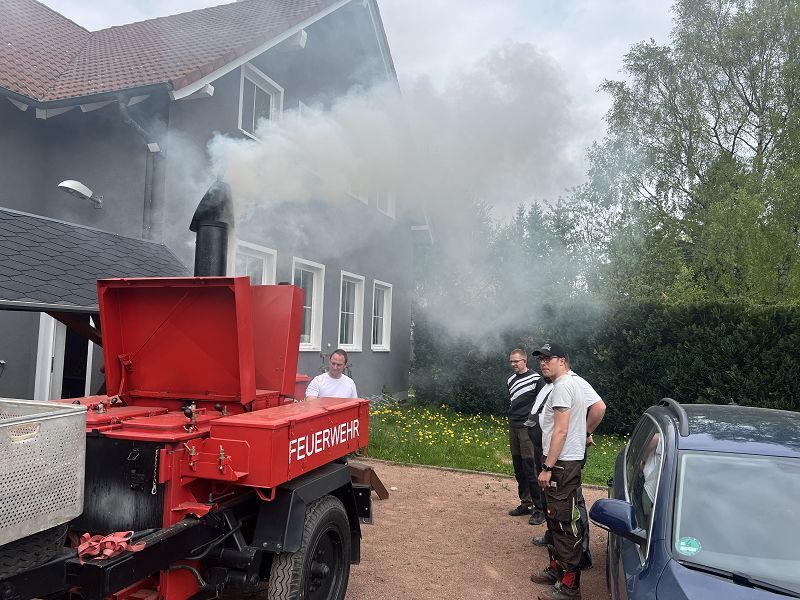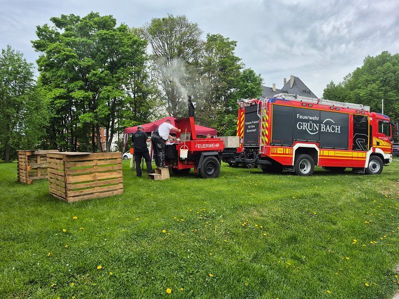 Das haben wir doch gern gemacht, zeigte sich dann die Kameraden der Grünbacher Wehr zufrieden. Der angekündigte und dann auch einsetzende Regen kam pünktlich als alle zum Glück mit Essen fertig waren. Der Draht nach oben hat funktioniert!