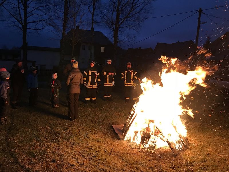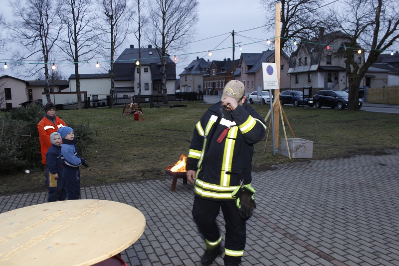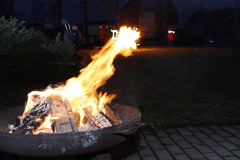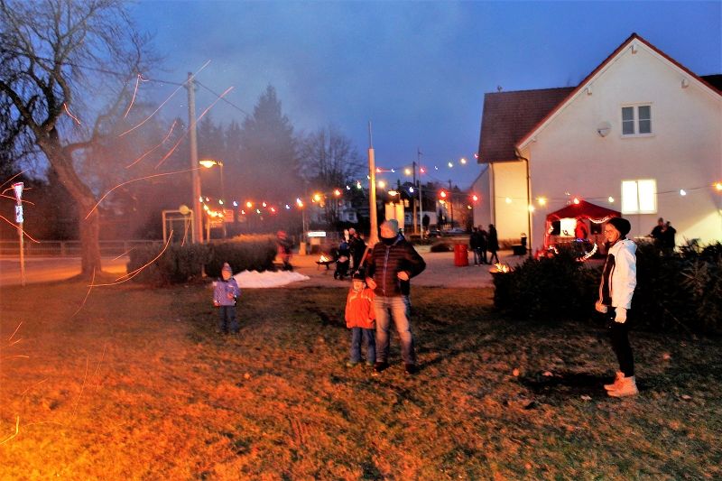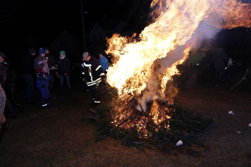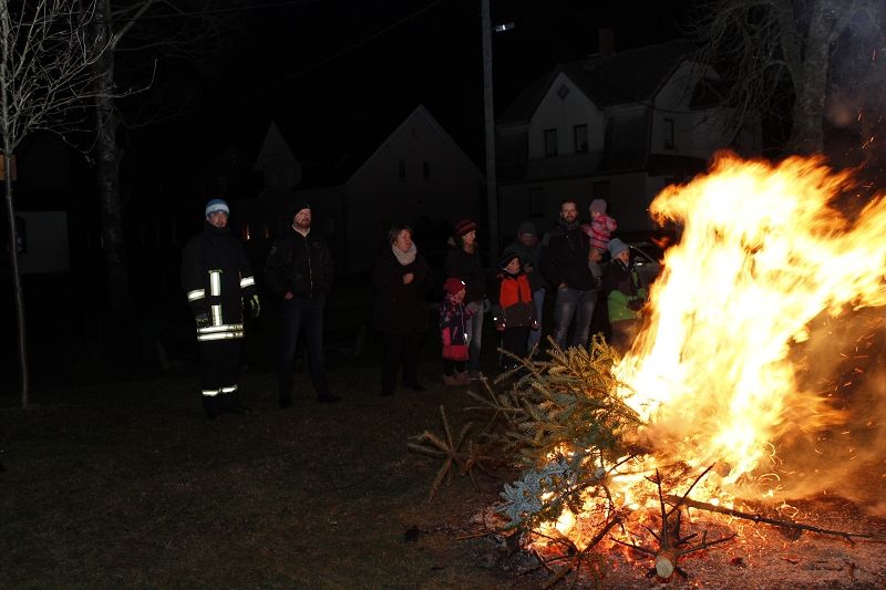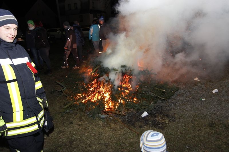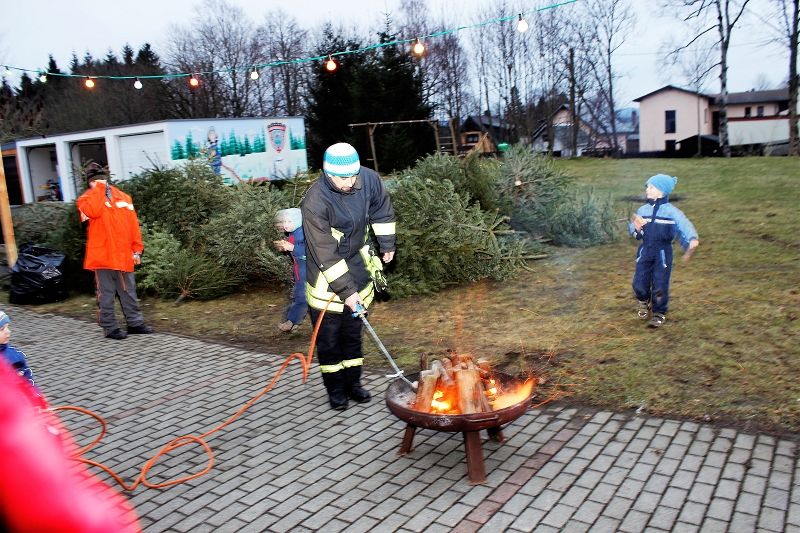 Einen tollen Jahresauftakt konnten die Grünbacher und viele Gäste der Umgebung zum 10. KNUT-Fest der Feuerwehr erleben. Das halbe Dorf brach mit ihren trockenen Bäumen gen Feuerwehrhaus auf und sorgte ein letztes Mal mit dem alten Tannenbaum für ein stimmungsvolles Ambiente in dem sonst leider schneefreien Festgelände. Obwohl - ganz schneefrei war der Platz dann doch nicht! Kameraden hatten zur Erinnerung an frühere schneereiche Feste 2 PKW-Anhänger Schnee auf das Festgelände transportiert und viele Kinder hatten diesen kleinen weißen Berg schnell gefunden. Am nächsten Tag war dort nur noch ein fester Eisberg! Auch auf dem Fußballplatz hinter den Verkaufsständen herrschte reges Treiben der Kinder beim Fußball.