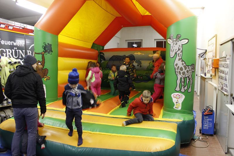 Noch ehe sich die Eltern versahen, waren die Kinder aber weg! Wohin - wenn es keine Eisbahn gab? Es ging zur Hüpfburg in das Feuerwehrhaus! Eine klasse Idee der Feuerwehrverantwortlichen, das fehlende Aktionsangebot im Outdoorbereich durch die Hüpfburg zu kompensieren! Zum Teil barfüßig sprangen und hüpften die Kids bis zur totalen Erschöpfung und kamen oft schweißgebadet, um sich bei den Eltern zu melden.
