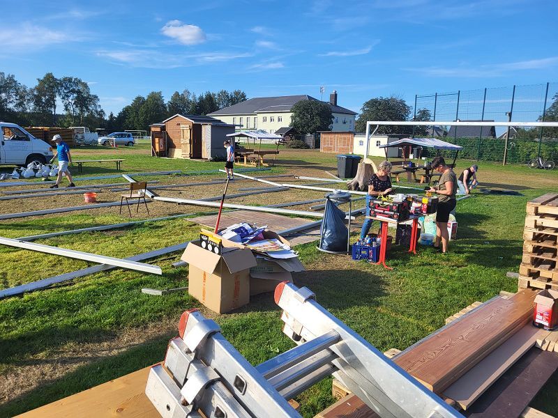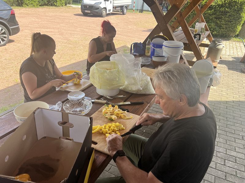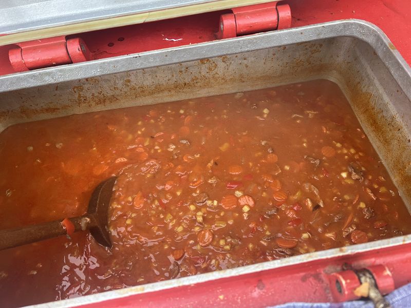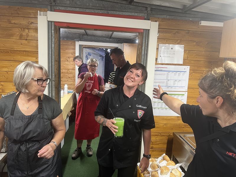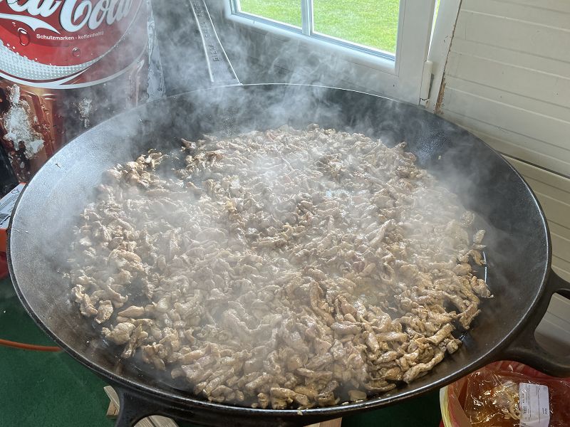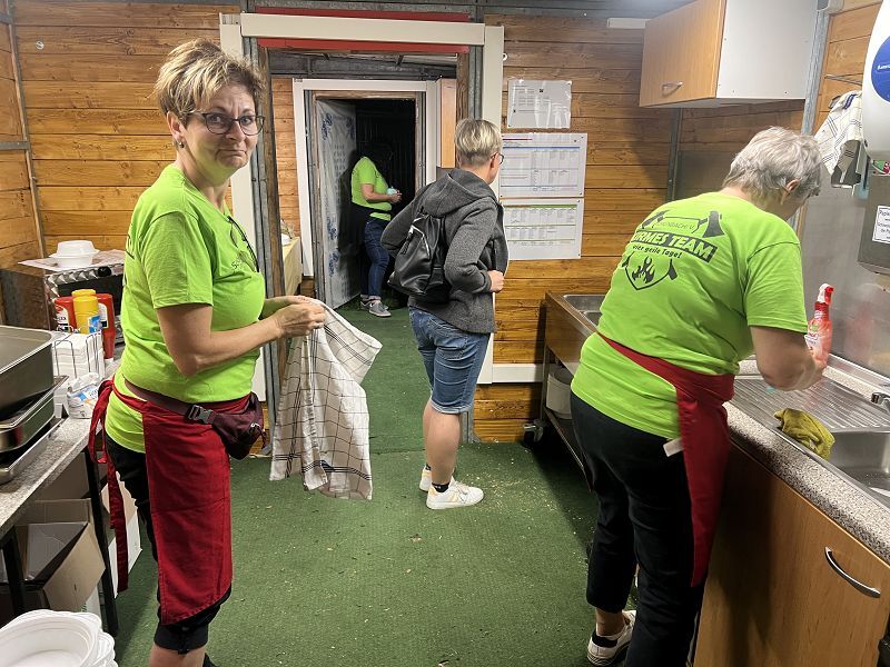 Seit Monaten bereiten sich die Vereinsvorstandsmitglieder mit dem Kirmes-Fest Team auf diese 4 tollen Tage vor, verpflichten Bands, Lieferanten für Getränke und Speisen. In der Gemeinde läuft alles auf Hochtouren, werden WC-Container bestellt und Aufträge zum neuen Verkehrskonzept beauftragt, die das Parken im Ort verbessern sollen! Die Frauen und Männer um Vereinschef Tiemo Pöhler mobilisierten mehr als 120 Helfer aus Feuerwehr, Grünbacher Vereinen, Menschen aus Grünbach-die einfach helfen wollen, aber auch Vereinen aus dem Umland, wie die Rodewischer Wanderfalken, oder den Hammerbrücker Heimatverein, um das Fest zum Laufen zu bringen. Bereits am Mittwoch wurde der Kesselgulasch durch die Feuerwehr in der Feldküche zubereitet und portionsweise eingefrostet. Dafür konnte ein Kühlhaus der Familie Marosi benutzt werden. Aufgewärmt schmeckt jede Suppe sowieso besser!