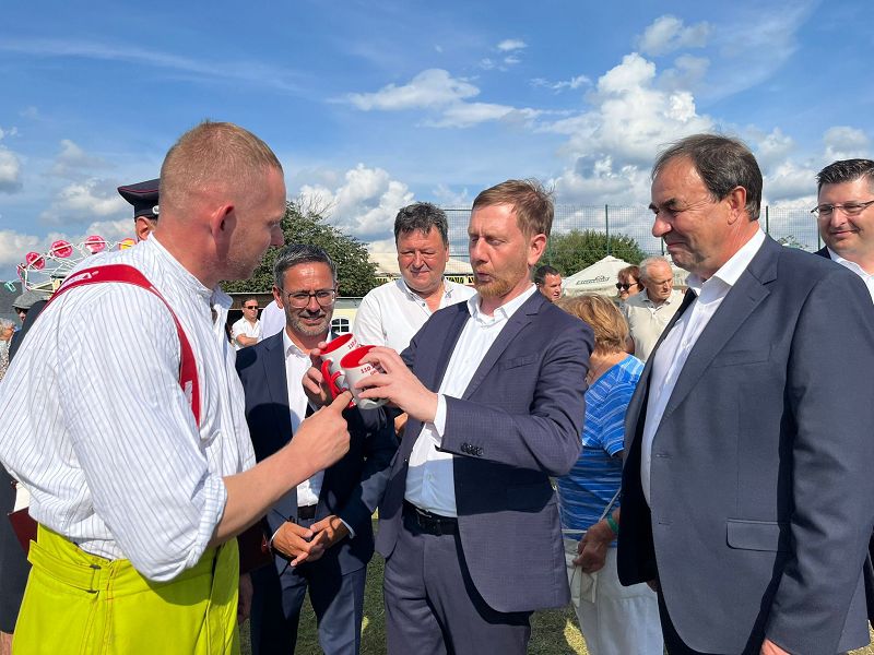 Es war übrigens der dritte Minister der sächssischen Landesregierung der zu einem Feuerwehrfest nach Grünbach gekommen ist! Aber der erste, der dann auch arbeiten musste! Mit großem Stolz durfte er das österreichische Blasorchester bei einem zünftigen österreichischen Marsch dirigieren!