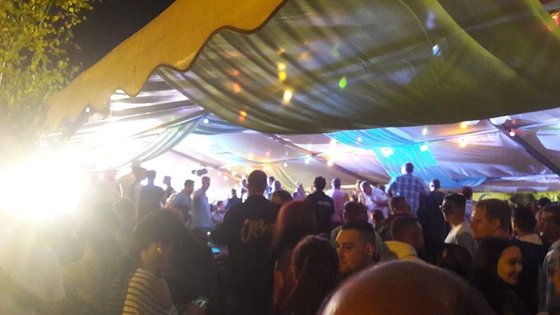 Man kann nur schlecht die vielen Besucher an diesem lauwarmen Montagabend zählen. Vielleicht waren es 1500, vielleicht auch 2000 Gäste. Fakt ist, dass Zelt und das gesamte Außengelände waren rappelvoll und wie immer das Dorf zugeparkt!