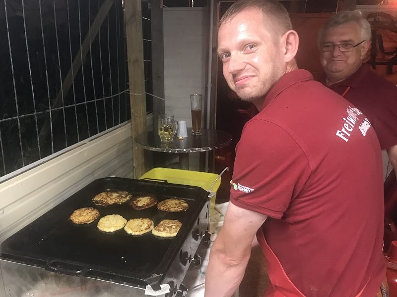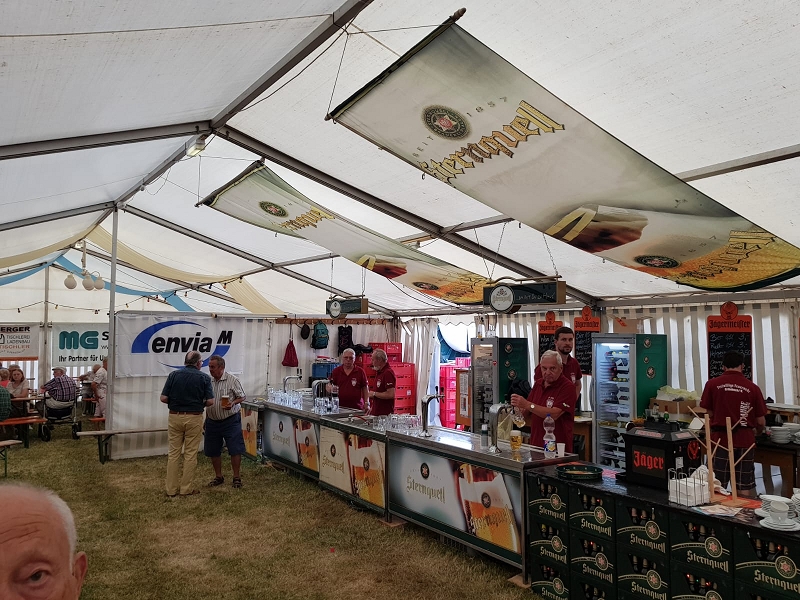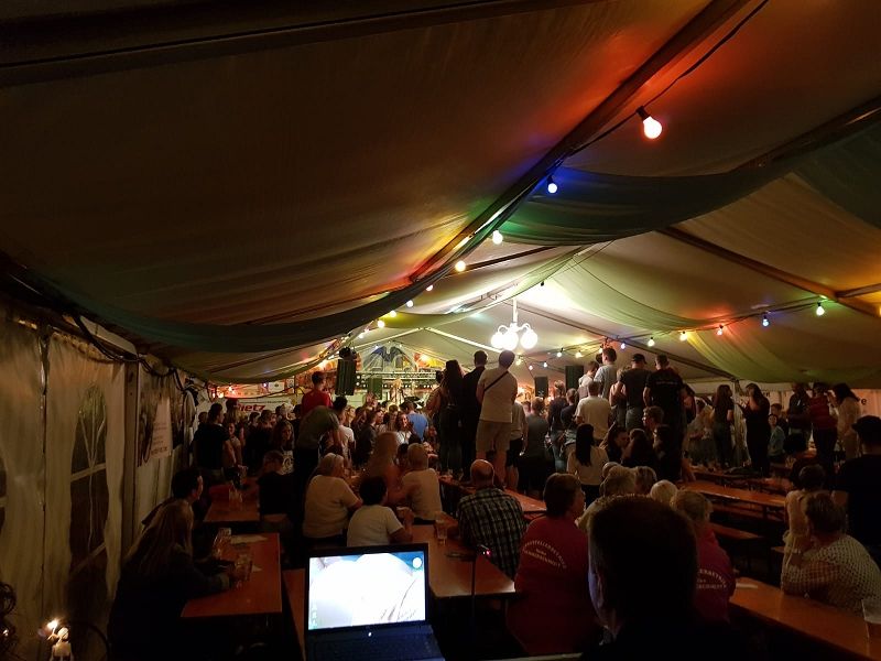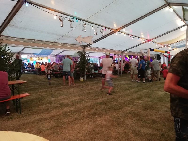 Zur Blasmusik der Band "Die Böhmischen Vogtländer" wagten sich einige Fans , trotz großer Wärme auf den Tanzboden. Und nachdem der Kuchenabsatz am Samstag schleppend lief und am Sonntag eine neue Ladung an leckeren frisch gebackenen Kuchen anrollten, hatten manche Kuchenverkäufer schon Sorgenfalten auf Grund des übervollen Kühlcontainers. Am Ende war alles ausverkauft! Riesen herzlichen Dank den Bäckern, den Verkäufern und vor allem den Käufern!