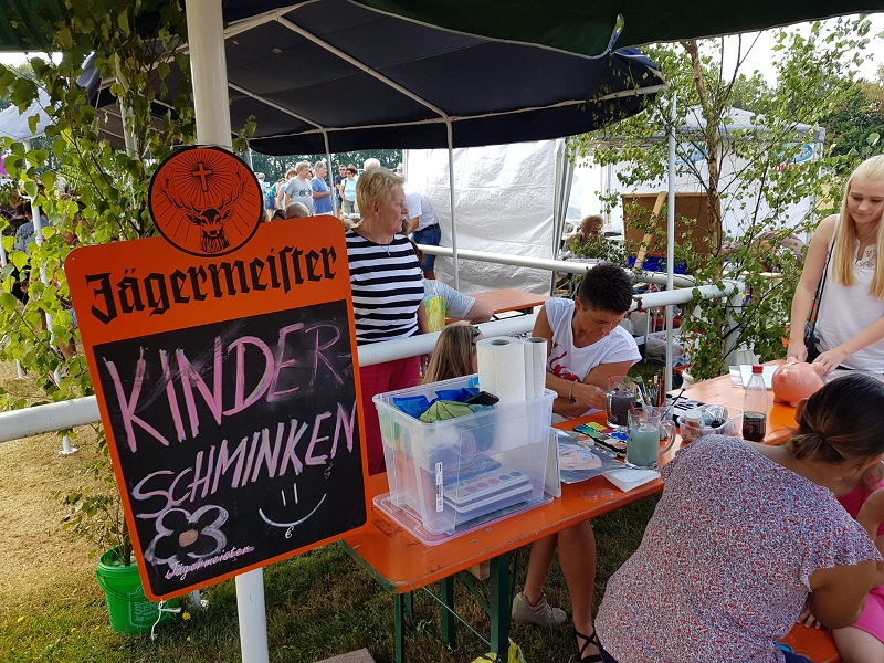 Auch am Sonntag konnten die Kinder auf dem Rücken der Ponnys einigen Runden drehen, sich die Gesichter in lustige Katzenaugen verwandeln lassen und auch ihr Bewegnungsdrang konnte gestillt werden. Die Hüpfburg des Kreisfeuerwehrverbandes lockte viele Kinder an, schließlich ähnelte sie ja einem Feuerwehrauto.