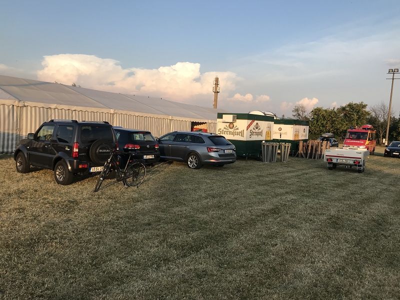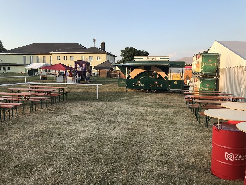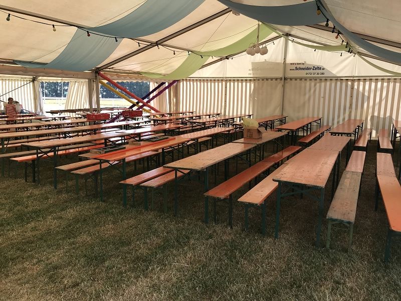 Morgen kommen alle Speisen und Betriebsmittel wie Teller und Besteck. Die Bierzeltgarnituren stehen und warten auf viele Gäste!