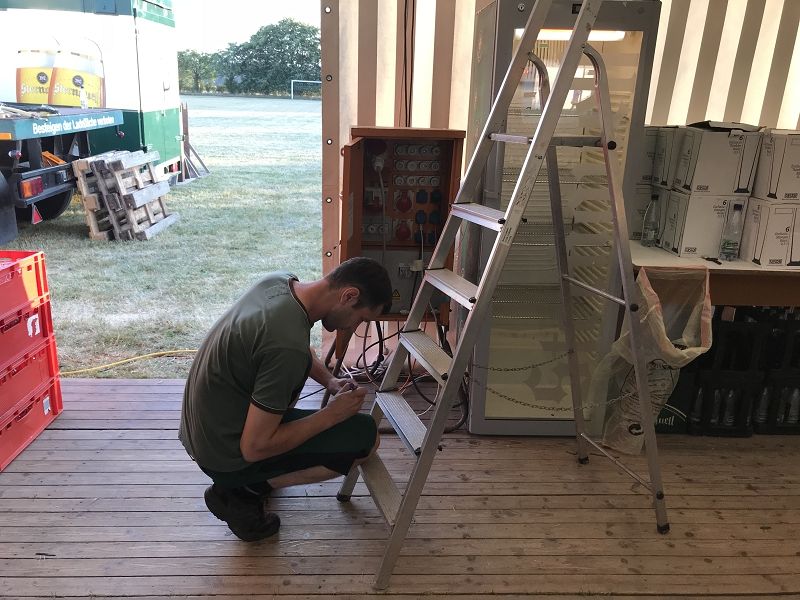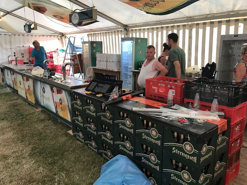 Kirmes 2018 - du kannst kommen! Viele Vereinsmitglieder haben durch ihren Einsatz, die meisten haben übrigens Urlaub gemacht, dafür gesorgt, dass heute das Ziel erreicht werden konnten. Der Großteil der Technik steht und die Deko ist bis auf die Preislisten auf den Tischen fertig.