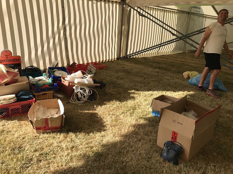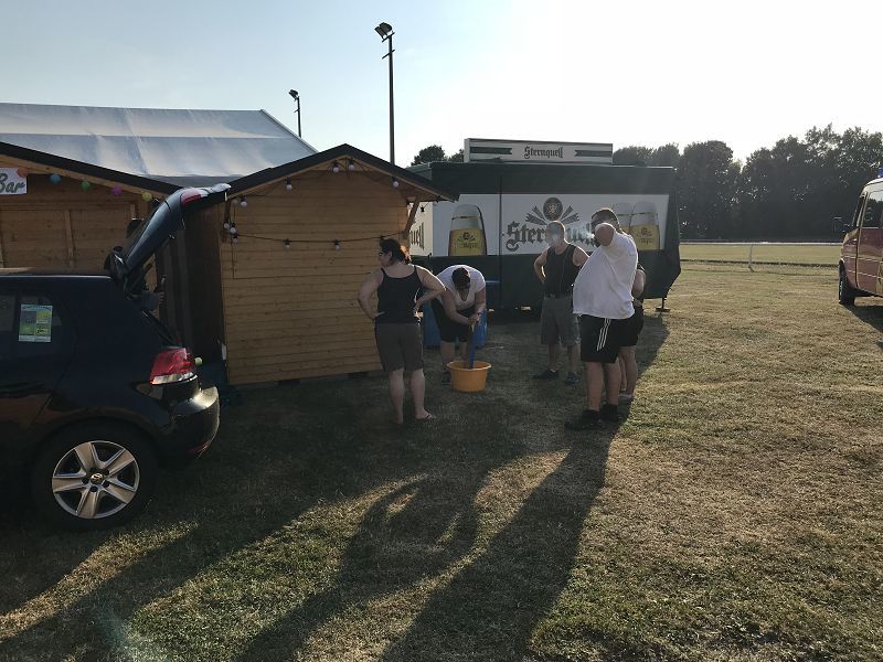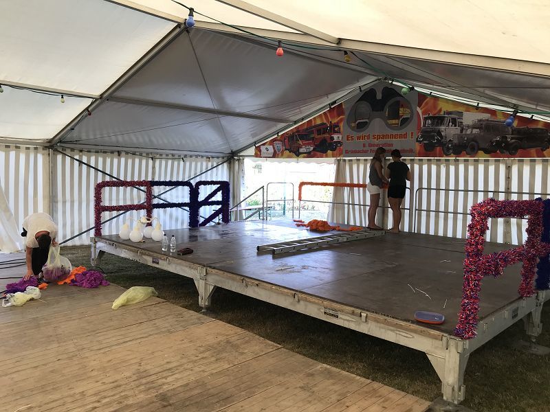 Weiter wurde die Notbeleuchtung für das Zelt montiert, Kühschränke und die schönen Bowlebuden aus Falkenstein aufgestellt und alles schön geschmückt.