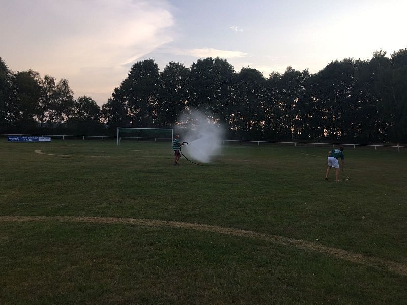 Nebenbei wurde Fußballplatz unserer Kicker durch die Feuerwehren Muldenberg und Grünbach bewässert. Vieleicht erstrahlt er ja doch noch in etwas grünem Schein!