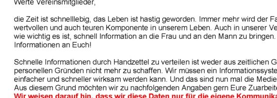 Informationen aller Art schneller an die Frau und den Mann, sprich an die Vereinsmitglieder zu bekommen, ist Ziel der großangelegten Kontaktabfrage des Vereinsvorstandes an seine Mitglieder.